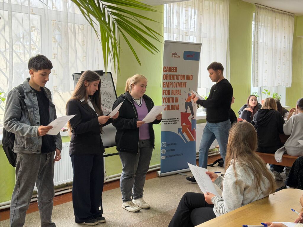 Echipa YMCA Moldova a vizitat Gimnaziul „Ion Sârbu” din satul Mășcăuți raionul Criuleni, unde a desfășurat o sesiune interactivă dedicată tinerilor interesați de dezvoltarea personală și profesională. Activitatea face parte din proiectul „Orientare profesională și angajare pentru tinerii din mediul rural din Republica Moldova”, implementat în parteneriat cu Kerk in Actie (Țările de Jos).