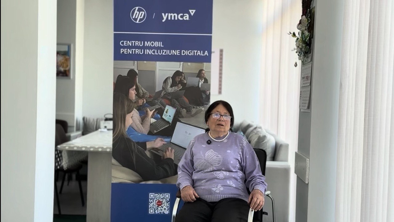 Doamna Zinaida, beneficiară a Centrului Comunitar pentru persoane vârstnice și refugiați din Budești, își împărtășește experiența legată de activitățile dedicate promovării incluziunii digitale în rândul seniorilor.